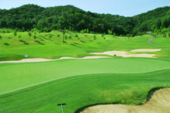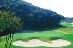 ティーショットしだいでは 2オン可能なロングホール。1打目はFW右狙い、グリーン奥が狭いので要注意。